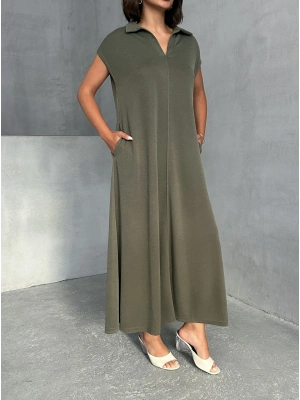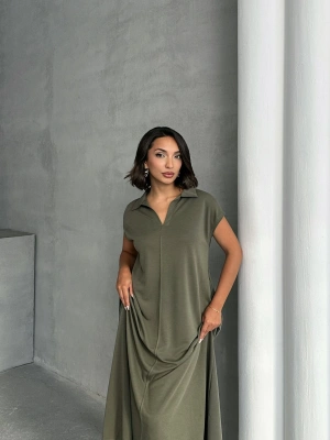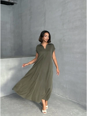 Boyundan Bağlamalı Uzun Elbise-sarı
