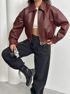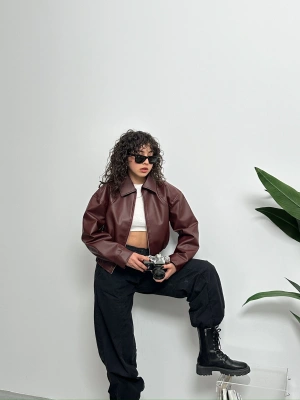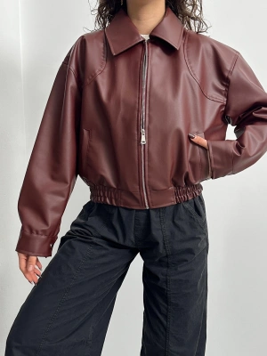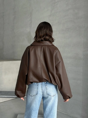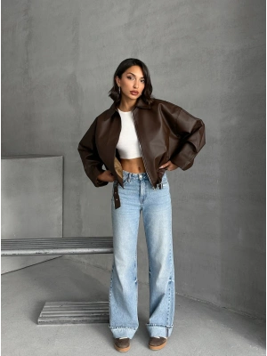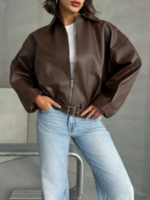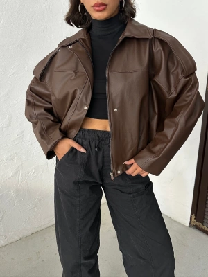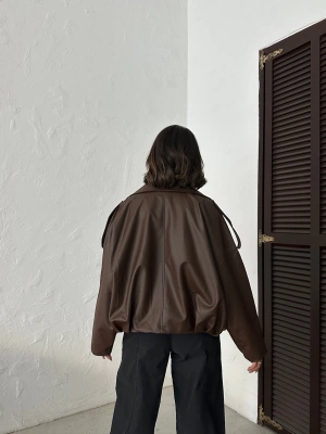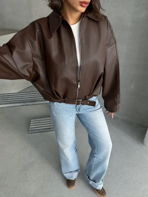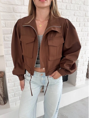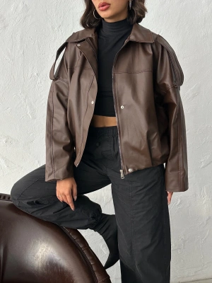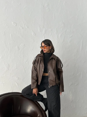 Astarlı Premium Çizgili Uzun Kaban-kahve