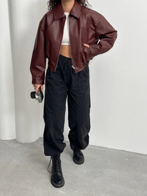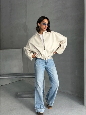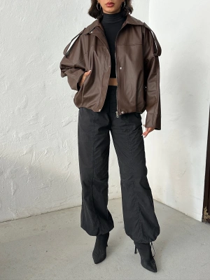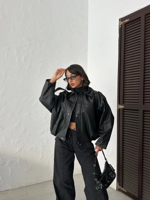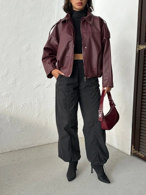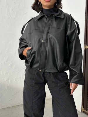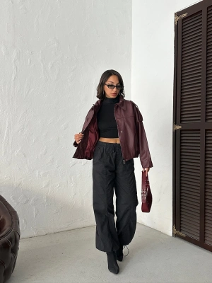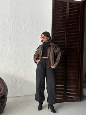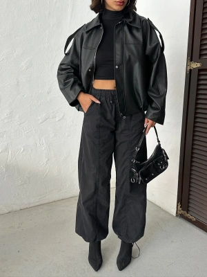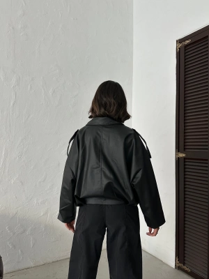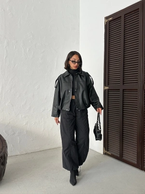 Astarlı Premium Çizgili Uzun Mevsimlik Mont-siyah