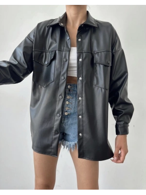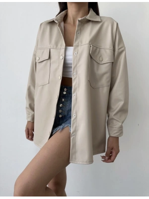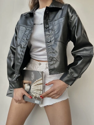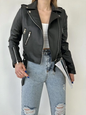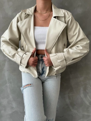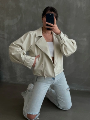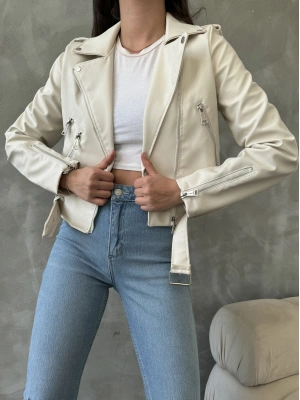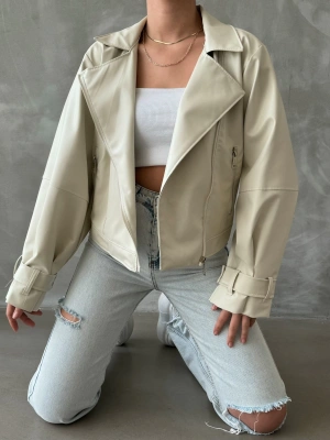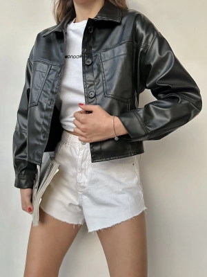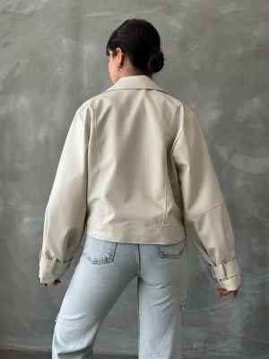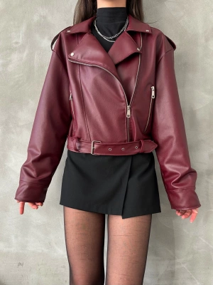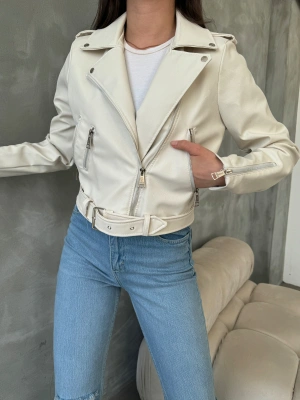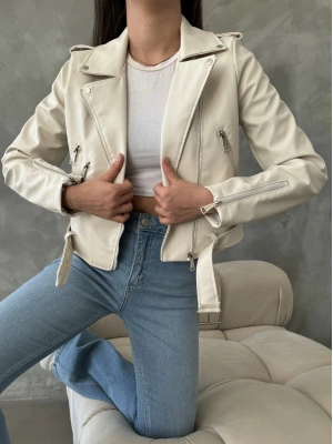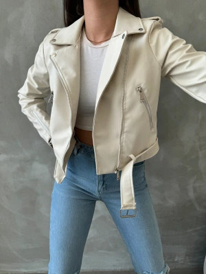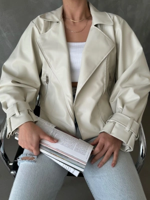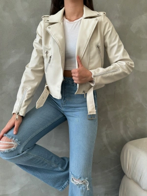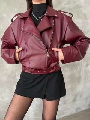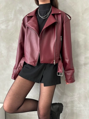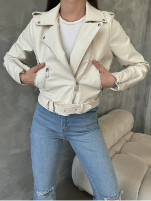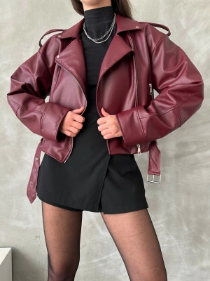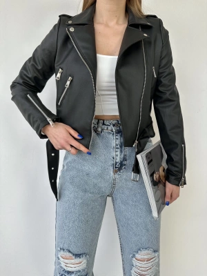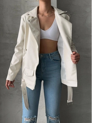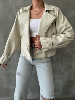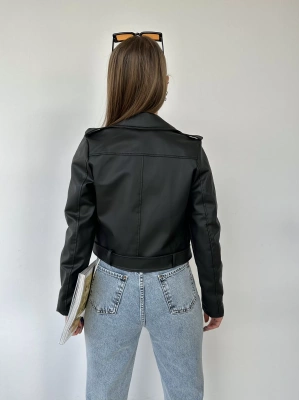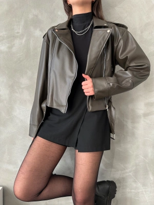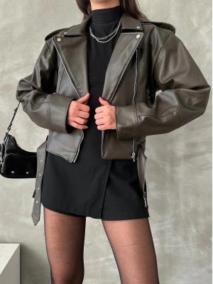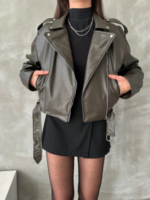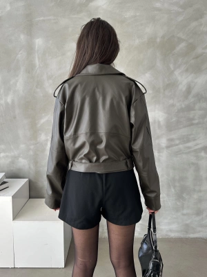 Muadil Model Kemerli Deri Ceket-Yeşil