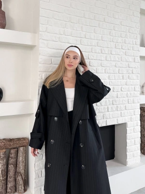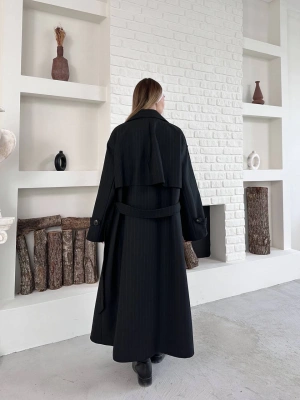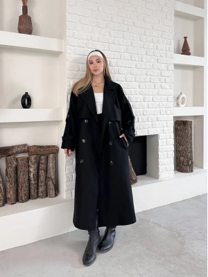 Astarlı Premium Çizgili Uzun Mevsimlik Mont-siyah