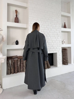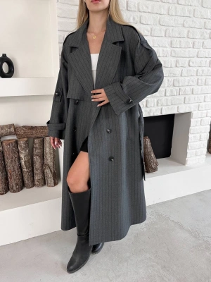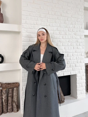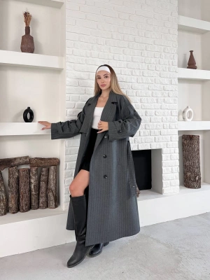 Astarlı Premium Çizgili Uzun Mont-gri