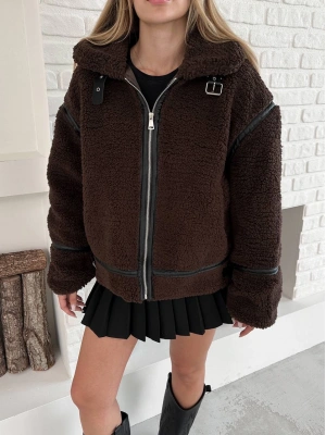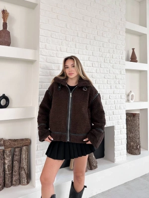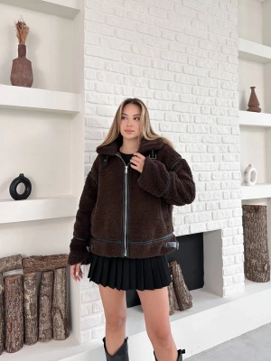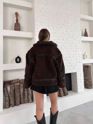 Biyeli Peluş Mont-kahve