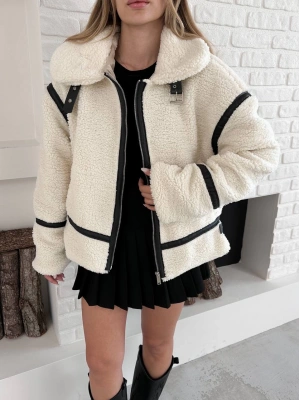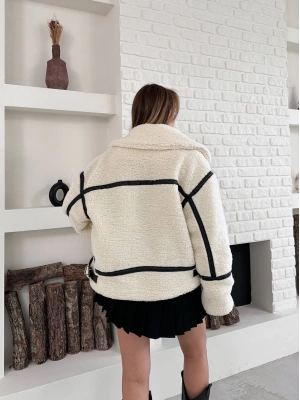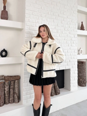 Biyeli Peluş Mont-krem