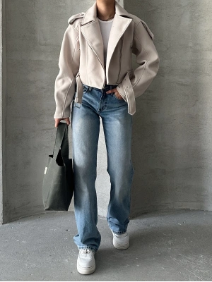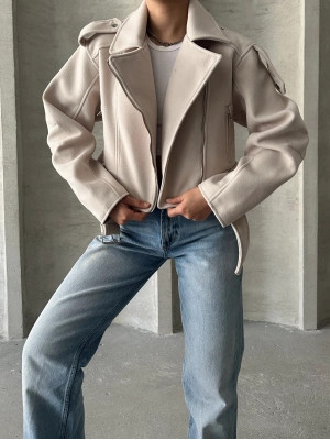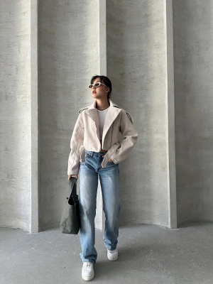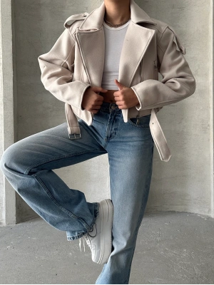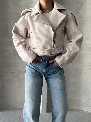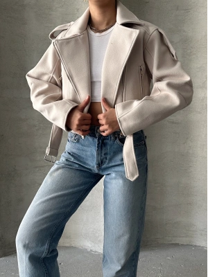 Kemerli Kısa Kaban-krem