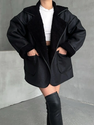 Winter Luxe Kürk Mont-siyah