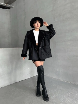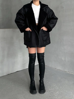 Premium Kısa Kaşe Kaban-siyah