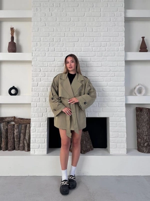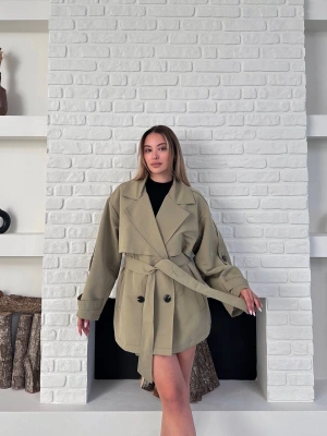 Premium Kısa Trençkot-yeşil