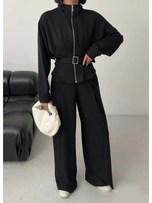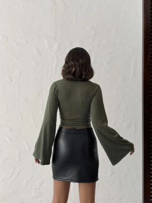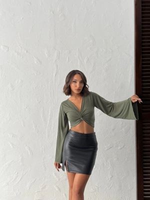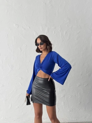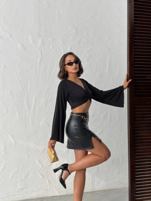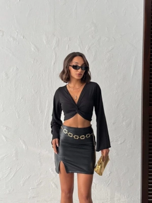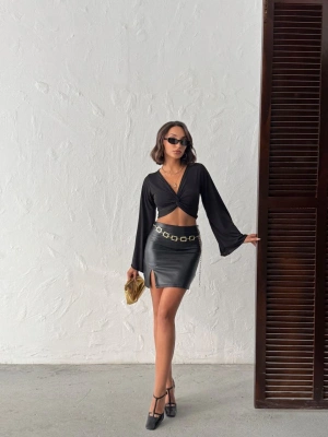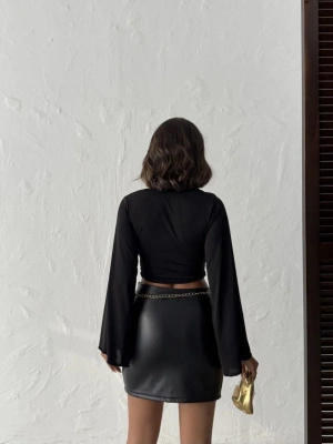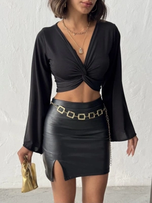 Parmak Geçmeli Bisiklet Yaka Bluz-siyah