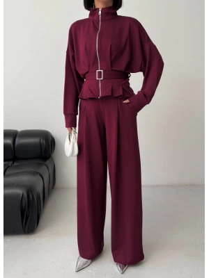 Parmak Geçmeli Bisiklet Yaka Bluz-bordo